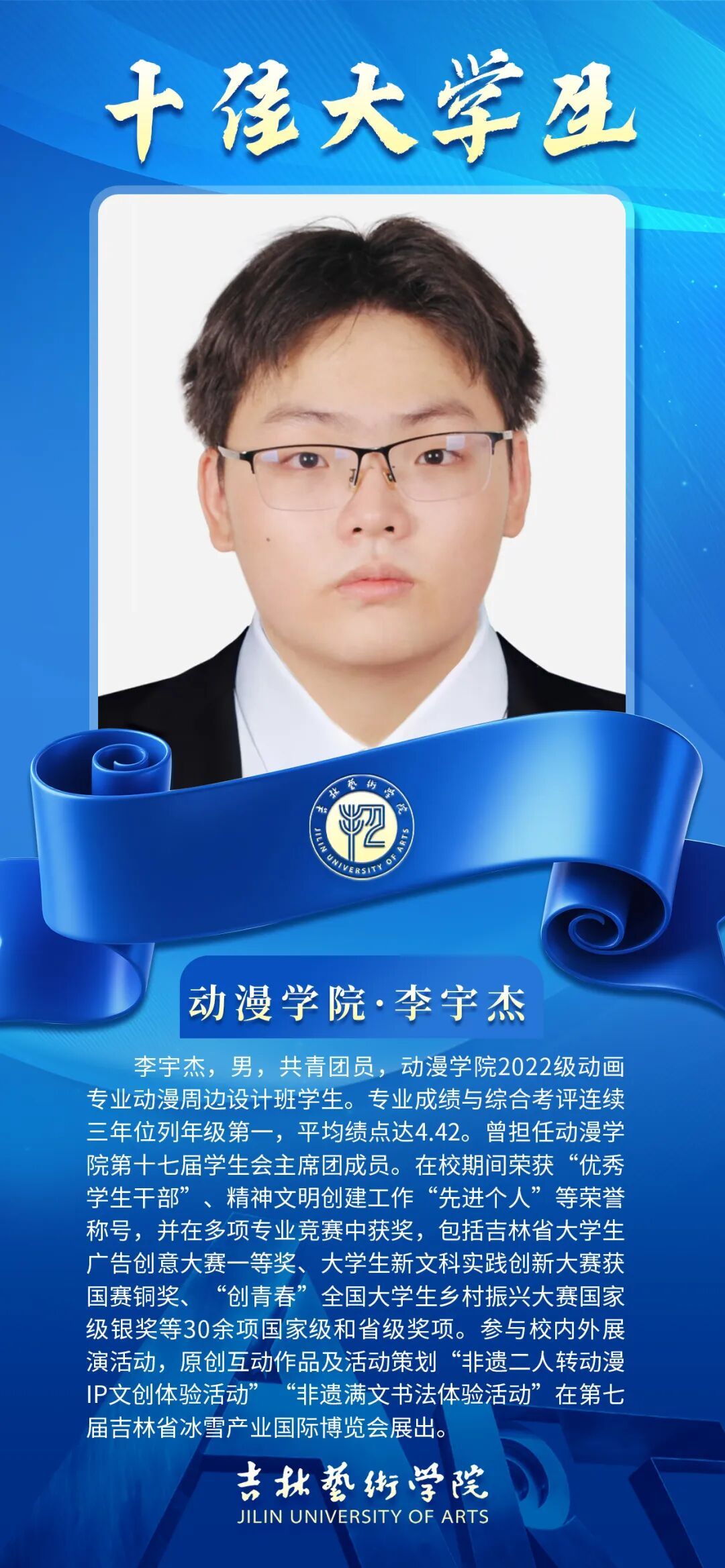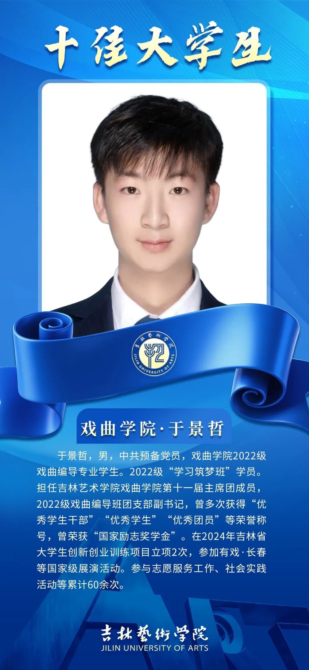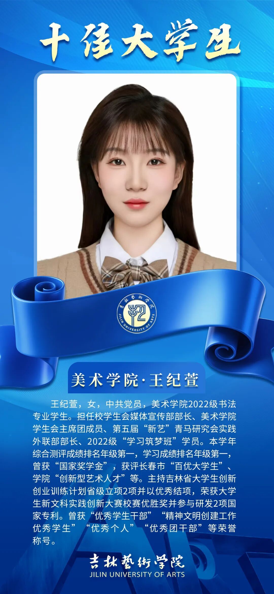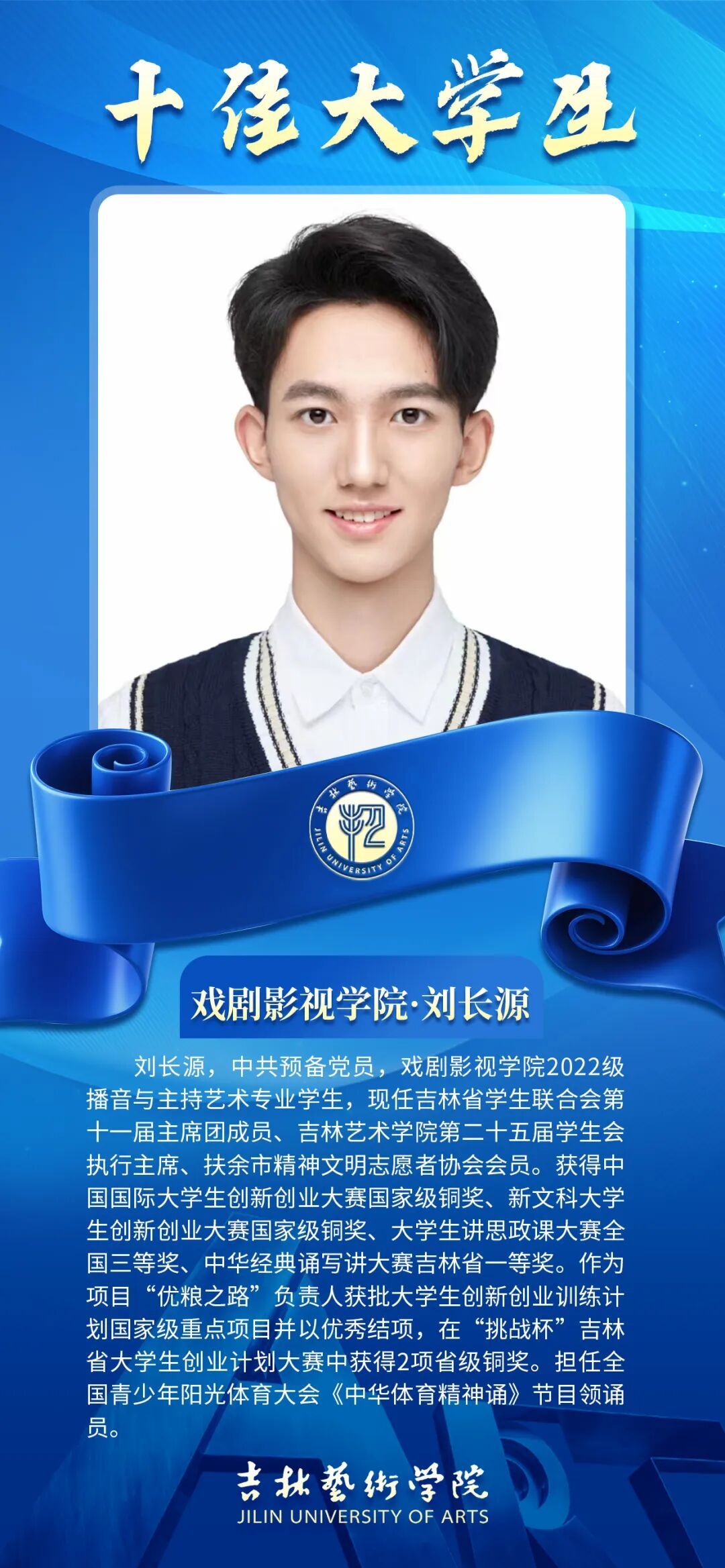 怀揣艺术梦想,肩负青年担当。在吉艺这片沃土上,他们以青春之名,挺立潮头,勇担时代重任;以艺术之志,挥洒激情,书写着无愧于青春的奋斗篇章。他们就是吉林艺术学院2024—2025学年“十佳大学生”获得者。 学生工作处 2025年12月17日