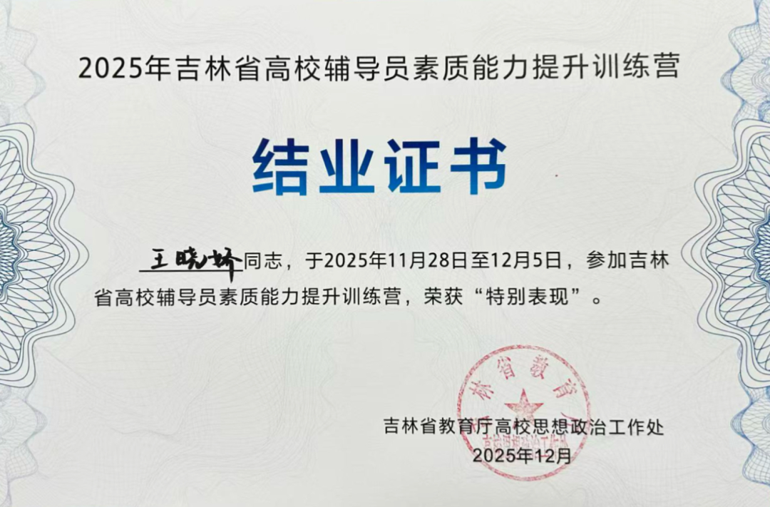近日,由吉林省教育厅主办的2025年吉林省高校辅导员素质能力提升训练营在长春中医药大学圆满落幕。学生工作部(处)选派代表观摩学习并组织辅导员代表参加了本次比赛。其中,设计学院辅导员王晓娇在全省61所高校100名参训辅导员中脱颖而出,荣获“特别表现”奖,充分展现了我院辅导员队伍的专业素养和精神风貌。