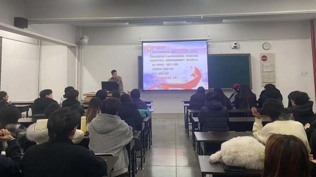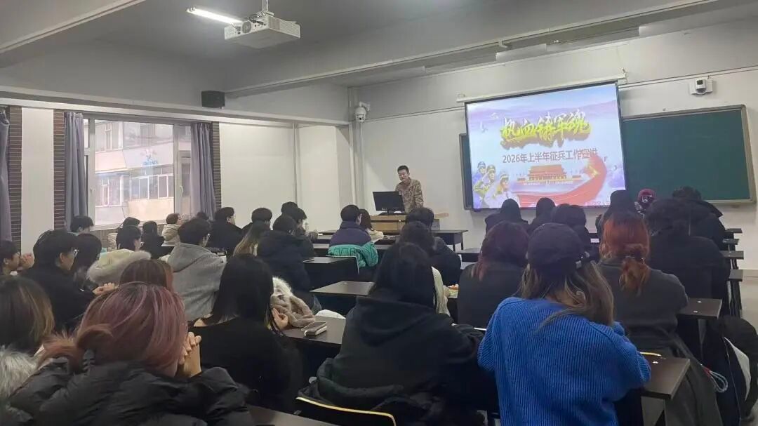 为鼓励优秀学子投身国防事业,学院党委武装部于12月18日,在红旗校区举办了2026年春季大学生征兵政策宣讲会。